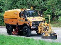 Seit 50 Jahren gibt es jetzt den Unimog. Höchste Zeit, die vollständige Geschichte des Klassikers aus Gaggenau zu präsentieren. Die Geschichte des legendären Unimog beginnt so abenteuerlich wie die Zeit ist, in der dieses ungewöhnliche Automobil zur Welt kommt. Sein Erfinder ist Albert Friedrich, ehemaliger Leiter der Flugmotorenkonstruktion der damaligen Daimler-Benz AG. Er begann schon während des Zweiten Weltkriegs, sich mit der Idee einer kompakten Zugmaschine zu beschäftigen. Unmittelbar nach Kriegsende beginnt Friedrich 1945 mit der Entwicklung des Unimog. Gedacht als landwirtschaftliches Fahrzeugs, soll es sich jedoch ganz erheblich von klassischen Traktoren unterscheiden. Als Partner für die Entwicklung des neuen Fahrzeugs findet der Ingenieur unter anderem seinen ehemaligen Kollegen Heinrich Rößler, früher auch in der Pkw- und Motorenentwicklung von Daimler-Benz beschäftigt. Die Sache passt, denn Rößler schlägt sich seit Kriegsende als Hilfsarbeiter in der Landwirtschaft durch, kann daraus viele Erfahrungen einfließen lassen. Ursprünglich eine landwirtschaftliche Arbeitsmaschine Erste Zeichnungen Friedrichs zeigen ein "Motorgetriebenes Universalgerät für die Landwirtschaft", die Bezeichnung Unimog gibt es noch nicht. Allradantrieb und vier gleich große Räder kennzeichnen das schlichte Fahrzeug, das mit 25 PS als Schlepper, landwirtschaftliches Gerät, stationäre Antriebsmaschine und Lieferfahrzeug für die Agrarwirtschaft gedacht ist; an die vielfältigen späteren Einsatzmöglichkeiten denkt in der Nachkriegszeit noch niemand. Sechs Geschwindigkeiten bis 50 km/h sind geplant, Antrieb für Landgeräte vorn, Schleppeinrichtung hinten, Laderaum in der Mitte. Alles zusammen ein simples, aber trotzdem ungewöhnliches und einzigartiges Konzept, das sich von herkömmlichen Traktoren deutlich abhebt. Friedrich knüpft Kontakte zur damaligen amerikanischen Besatzungsmacht, erwirbt eine rare "Production Order", also eine Erlaubnis zur Fertigung. Als Partner für Entwicklung und Produktion ist die Firma Erhard & Söhne in Schwäbisch Gmünd ausersehen, eine Gold- und Silberwarenfabrik. Die Ingenieure entwickeln ihr Fahrzeug in schnellen Schritten weiter. Bald zeigen die Zeichnungen eine geänderte, sehr rationelle Konstruktion: identische Blechkörper für die Gehäuse der Vorder- und Hinterachse, identische Laufradvorgelege mit Bremsen für Vorder- und Hinterachse, nur vier Antriebsgelenke. Die Konstrukteure denken praktisch: Eine Spurweite von 1270 Millimeter entspricht zwei Kartoffelreihen. Zahlreiche Merkmale machen das neue Fahrzeug einzigartig, unter anderem die vergleichsweise hohe Geschwindigkeit, schraubengefederte und gedämpfte Achsen, Allradantrieb mit Differenzialsperren vorne und hinten, Rahmenbauweise vergleichbar mit Lastwagen oder Pkw, Anbaumöglichkeiten für Geräte vorn, in der Mitte, seitlich und hinten, Betrieb einer Zapfwelle vorne, in der Mitte und hinten. Das erste Versuchsfahrzeug entspricht mit seiner schrägen Frontpartie, dem Fahrerhaus mit Verdeck und der Ladefläche dahinter Ende 1946 schon weitgehend dem späteren Serienmodell. In dieser Zeit entsteht auch der Name: Aus dem Begriff Universal-Motor-Gerät wird zusammengezogen Unimog. Bereits im Frühjahr 1947 wagen die Ingenieure eine erste Vorführung. Noch fehlte jedoch ein geeigneter Dieselmotor. Den steuert ab 1947 Daimler-Benz mit dem soeben neu entwickelten OM 636 zu. Dessen Produktion ist zunächst noch gar nicht beschlossen, doch die Mannschaft um Friedrich setzt auf die Marke mit dem Stern, man kennt sich schließlich bestens. Einer Fertigung steht bald nichts mehr im Weg - außer dem richtigen Partner, denn dafür kommt die Firma Erhard trotz ihres großen Engagements für die Entwicklung nicht in Frage. Verschiedene Autohersteller winken ab, die Werkzeugmaschinenfabrik Gebrüder Boehringer in Göppingen steigt 1947 ein. Material für die Serienfertigung wird beschafft, in diesen Zeiten kein leichtes Unterfangen. Auch bemühen sich die Unimog-Entwickler um die passenden Reifen sowie die zwingend notwendigen Anbaugeräte für ihr Fahrzeug. Selbstverständlich ist dies alles nicht, schließlich gibt es bereits Traktoren, warum also alles auch auf den anders gearteten Unimog zuschneidern? Doch kurz darauf rückt der Unimog 1948 anlässlich der DLG-Ausstellung in Frankfurt erstmals in das Blickfeld der Öffentlichkeit. Im August 1948 ist es dann soweit: Bei Boehringer beginnt die Serienfertigung des Unimog. Boehringer aber ist kein Autohersteller, die Entwicklermannschaft um Albert Friedrich wiederum besteht aus Ingenieuren. In Windeseile muss deshalb parallel zur beginnenden Produktion ein neuer Vertrieb aus dem Boden gestampft werden. Und nicht nur die Landwirtschaft interessiert sich für das neuartige Fahrzeug, auch Behörden zeigen Interesse, sie fordern genormte Anbaugeräte. Es entwickelt sich die bis heute sehr fruchtbare und enge Zusammenarbeit mit den Geräteherstellern. Bis Sommer 1950 fertigt Boehringer rund 600 Unimog, den als Markenzeichen ein stilisierter Ochsenkopf mit Hörnern in Form eines "U" ziert. Für höhere Stückzahlen aber sind große Investitionen nötig, die Boehringer nicht aufbringen kann. Und so kommt es, wie es beim beruflichen Hintergrund der Entwicklungsmannschaft wohl kommen muss: Im Herbst 1950 übernimmt Daimler-Benz das ganze Projekt einschließlich der Patente, den Entwicklern und dem neu aufgebauten Vertrieb. Der Unimog zieht in seine heutige Heimat um, ins damalige Lastwagenwerk Gaggenau. Den gesteigerten Ansprüchen und immer vielfältigeren Einsätzen genügt der kleine Basis-Unimog alleine Anfang der sechziger Jahre nicht mehr. Auch der Unimog S als überwiegend militärisches Fahrzeug ist nicht immer die richtige Alternative für den zivilen Bedarf, auch wenn es ihn nicht nur in oliv gibt. So gesellt sich ab 1963 unter dem Zahlencode 406 erstmals eine mittlere Baureihe hinzu. Der Radstand des neuen, zusätzlichen Mercedes-Benz Unimog be